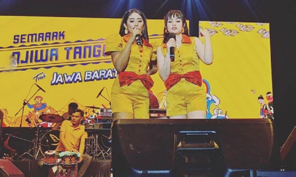 Duo Anggrek, perform off air di konser rakyat “Semarak Djiwa Tangguh” di Karawang, Jawa Barat, Sabtu (12/8/2023)